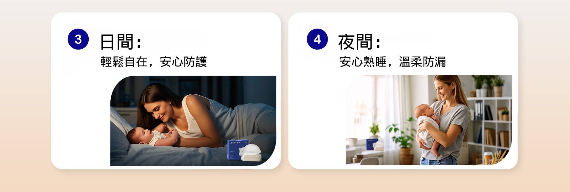 每次餵奶後建議更換乳墊,量大時也請隨時更换